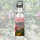 This pretty pink orchid water bottle features a painterly version of the amazing work of the Amazon rain forest by Martin Johnson Heade. Your or your recipient's name s monogrammed at the top in darak olive green on a dusty pink colorblock, set off by a silver colored border. This artwork features a closeup of a pink exotic Cattelya orchid with 3 Brazilian hummingbirds. A simulated photo/watercolor filter was run on the image to bring out its luminosity. This beautiful 1871 work is in the public domain and made available to Flickr commons by Swallowtail Garden Seeds. This water bottle can keep you hydrated at the gym or on a walk, or else make a great gift for a gardener or loved one who enjoys art and flowers.