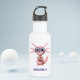 Garrafa de água fofa e divertida personalizada com uma ilustração de um axolotl nerd. presente de excelente para crianças. Ilustrada e projetada por Patricia Alvarez.
