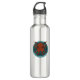Uma garrafa de água que apresenta uma caricatura de um polvo vermelho ferrugem com uma testa média, tentáculos de enrolação espalhados em todas as direções e sugadores de cor lisa expostos. Um cardume de peixe no fundo. Para fãs de polvos e cefalópodes com atitude. Personalize com uma simples alteração no texto editável que se curva em torno da imagem. Personalize-o para mudar a cor do círculo verde oceânico que rodeia e mostra através do fundo interno semitransparente.