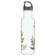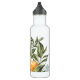 Fruta de citrinos de cor aquática russa, verde-pomar e flores brancas, garrafa de água personalizada. linha de texto modelo para nome no script de assinatura de cor verde de coordenação bonito.