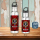 Crachá da crista do Clan MacQueen cercado por uma pulseira e fivela sobre fundo de tartã. Custom Text.