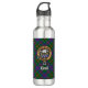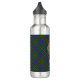 Crachá da crista de madeira de clã rodeado por uma correia e fivela sobre fundo de tartã. Custom Text.