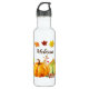 Uma garrafa de água personalizada com uma ilustração aquosa de abóboras e folhas sazonais de outono. Folhas de carvalho e maple em torno de seu nome personalizado.