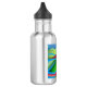 Uma paisagem abstrato com cores e texturas vibrantes mostrando colinas flutuando no gelo em tons de verde, azul, ciano, vermelho e rosa.