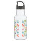 Inspire seu filho para ficar hidratado com nossa gata de água de dinossauro personalizada e fofa. A garrafa de água personalizada mostra o nome da criança em texto branco enquadrado por um retângulo de coral. O fundo apresenta um padrão de dinossauros verdes, laranja, rosa, azul, roxo e corais com palmeiras e folhagem.