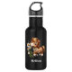 Uma garrafa de água com uma ilustração adorável. Um pequeno pônei marrom comendo margaridas felizes.