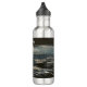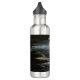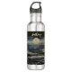 Pintado céu noturno de lua azul sobre a água. Uma renderização de abstrato de uma noite de terror na praia. Azul da meia-noite e negros iluminados pela lua de cheio. Uma cena romântica incrível.