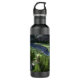 Um caminho de enrolamento leva sobre as montanhas até um vale do rio solitário. Ele atravessa o riacho rochoso sobre uma linha de pedras pisadas e termina em uma solitário enfiada debaixo das árvores ao pé das colinas. O campo da montanha está cheio de grama verde e manchas de flores azuis e rosa. Os picos de sombreamento ainda estão cobertos de neve nesta manhã de primavera.