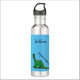 Conheça Confetti, o Dinossauro.que orgulhosamente proclama QUE TODOS SÃO DIFERENTES. Adorável, mas diferente! - dinossauro com manchas coloridas do arco-íris decora esta garrafa de água fofa. Personalize com o nome escolhido.