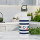 Esta garrafa de água personalizada apresenta um fundo azul marinho e branco de faixa, borda falsa dourada, e uma bonito coloração rosa em aquarelas moles. Coordena-se com nossos suprimentos de Marinho Stripe & Pink Peony, produtos de papel, artigos domésticos e acessórios. Personalize com um monograma, nome ou texto de sua escolha!