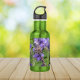Para os fãs da natureza e da libélula! Acaba a sede enquanto se desloca com esta garrafa de água de aço inoxidável que mostra a foto de uma libélula Darner de olhos azuis que repousa em flores Aconitas roxas. Selecione o tamanho e a cor do frasco.