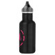 Uma garrafa de água de crânio engraçada com uma ilustração digital mostrando um crânio rosado com pestanas que parecem intrigadas com um verme feliz saindo de seu soquete ocular, flores para trás e ossos ao seu redor. Excelente para Halloween e estilo gótico com senso de humor.