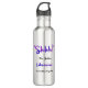 Engraçado personalizado Shhh! Garrafa de água das citações do bibliotecário de escola. A rotulação roxa do brushstroke da aguarela diz "Shhh!" nas citações. Personalize com nome do bibliotecário e nome da escola. Bibliotecário escrito na aguarela roxa e azul bonito que denomina brushstrokes. Ideias modernas e na moda do presente para bibliotecários de escola. Seja presente quieto do humor da biblioteca para seu bibliotecário favorito.