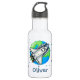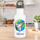 Esta garrafa personalizada de água de aço inoxidável apresenta uma bela nave de desenho animado voando pela Terra.