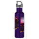 Garrafa de água com um desenho abstrato com camadas azuis e roxas com fitas de folha de ouro falsas no meio. Personalize com um nome.
