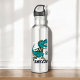 Uma garrafa de água legal para levar à prática de futebol, ou por qualquer tempo você precisa de água onde quer que você vá, este design tem um dinossauro T-Rex colorido em verde-real com uma camisa listrada de árbitro amarelo e preto chutando uma bola de futebol. O modelo de texto pode ser personalizado ou sair como está com a palavra "SOCCER" em texto a negrito.