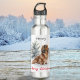 Aproveite a magia de inverno extra com esta deliciosa garrafa de água com tema doxie. A garrafa reutilizável apresenta uma ilustração ao estilo aquarela de um adorável dachshund de cabelos longos, numa maravilha de inverno de neve e árvores verdes. A saudação "Feliz Natal" aparece abaixo da imagem de um cão de salsicha, na elegante tipografia escrita em vermelho brilhante alegre e brilhante. Personalize com um nome no topo para um toque de final individual. Cheio de charme festivo, a garrafa de água de aço inoxidável é ideal para o viagem, e faz um belo presente de Natal para amantes de cachorros.