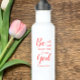 Adicione um nome para personalizar esta única garrafa de aço para um belo presente para a mulher cristã. Personalize a garrafa branca-chic com um nome na parte de trás. Personalize este presente de script de Bíblia com seu próprio texto, se desejar. Todo o moderno e elegante roteiro cor-de-rosa é editável. "Fique quieto e saiba que sou Deus", é um verso Bíblia cristão de Salmos 46:10. Reze e medite sobre a presença de Deus e sua calma enquanto bebe na hora de silêncio matinal. É um presente de fé cristã excelente para a mãe cristã, irmã espiritual ou amiga estudante de bíblias da igreja. A tipografia cor-de-rosa cria um toque feminino elegante.