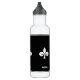 Na moda moderno de fleur-de-lis no frasco de água preto e branco. O texto pode ser personalizado.
