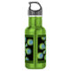 Verde-claro com a flor preta e azul como a garrafa de água de aço inoxidável do design abstrato. Mostrado aqui como personalizado com um nome em um oval do centro. Use o Zazzle fácil de usar personalizam a ferramenta para mudar o nome ao seus próprios ou a alguma outra pessoa para criar um presente original. Projete pelo pisco de peito vermelho Lynn Murray/RobinMurrayDesign.
