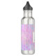 Garrafa de água com um padrão de fundo de abstrato. As aquarelas roxas e azuis cor-de-rosa formam este design artístico que apresenta formas retangulares verticais sobre um fundo malhado. Um quadrado em camadas acima com uma borda falsa de folha de ouro, seu dentro de texto personalizado.