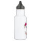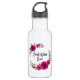 Uma garrafa de água com o texto: Melhor Mãe Nunca. Projetado com papoilas cor-de-rosa bonito fuchsia e presilhas decorativas e folhas numa coroa circular floral. Bonito e elegante e criado com aquarelas.