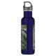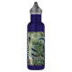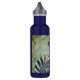 Foto de aproximação de um potro de zebra olhando para a câmera; a sua mãe parcialmente vista à direita da fotografia; verde ao fundo. Escolhi um azul escuro para a cor de fundo da garrafa, mas outras cores também estão disponíveis. Esta foto foi criada em 1996 durante um safari africano para a Zâmbia.