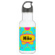 Esta garrafa de água tem um padrão abstrato divertido e divertido de ovais e círculos em cores brilhantes. Esta garrafa pode ser personalizada mudando o nome na frente dela.