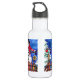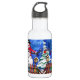 Pintura de aquarela original de Sandra Gale, de um tradicional homem de neve parado em frente a uma cerca de piquete com luzes de Natal brilhantes refletindo sobre a neve do inverno. Pássaros, casas de pássaros, e Enfeites de natal fazem disso uma cena clássica de Natal que parece excelente em papel de embrulho, cartões de natal e muito mais!