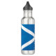 Garrafa de água/uísque bital, tradução gaélica escocesa com bandeira escocesa; fundo salgado pintado com tinta azul de cor d'água.