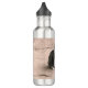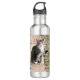 Uma garrafa d'água com uma foto de um gato.