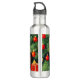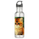 Garrafa de água com um gato natal vintage! Um gatinho laranja com listras pretas senta-se na neve. Atrás do gato está uma árvore de Natal com ornamentos vermelhos e amarelos. Também na neve há um presente vermelho. Um presente perfeito para a época de Natal e amantes de gatos!