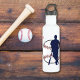 Esta é uma garrafa atraente para aquela cara que é um verdadeiro fã de baseball. Ele apresenta um jogador de baseball azul e uma silhueta de taco contra uma imagem de bola branca completa com costura vermelha. Seu nome ou outro texto está em vermelho.*Este design usa imagem © Graphics Fatory.com*