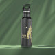 Esta garrafa de água distintiva apresenta um tênis macho da silhueta dourada em troca de cheio. Na parte inferior, o seu monograma em dourado correspondente enquadrado por linhas de ouro finas. O texto e a imagem são colocados sobre um fundo preto dramático.