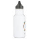 Uma garrafa de água personalizada com uma ilustração gráfica composta por um lobo de aquarela roxa, em uma pose clássica de uivação. Cercados por uma camada ilustrada de madeira, cristais, penas e miçangas. Legal motif nativo americano com estilo boho.