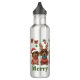 A Cute Water Bottle For Christmas Designed With Dressed Dachshunds And Merry Christmas Typography