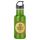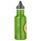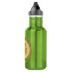Esta maravilhosa garrafa d'água apresenta uma imagem gráfica de uma moeda de ouro com dois tons de ouro. O círculo externo tem uma textura áspera. Dentro, o círculo interno da moeda é uma pedra-do-ouro texturizada composta por três folhas e um caule.