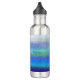 Maciços de cores azuis e verdes em uma bela garrafa de água com seu nome.