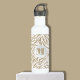 Uma garrafa de água branca de na moda apresenta uma impressão em branco e bege acentuada com o monograma inicial. Crie ou dê como presente.