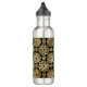 Garrafa de água de monograma, preto e fino, de aço inoxidável, com padrão floral moderno.