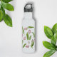O design do produto apresenta um padrão de flores tulipas cor-de-rosa. Esta ilustração botânica com monograma personalizado faz um chic moderno e uma garrafa de água única - Ideia de presente para aniversário, Páscoa, Dia das Mães, casamento, e muito mais!