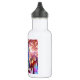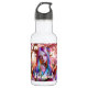Frasco de água personalizado. Bonito mulher rosa e púrpura com efeito místico num fundo verde e borboletas cor-de-rosa etéreo. Seu cabelo parece um bonito prisma.