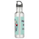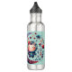 Monograma para que você insira seu próprio texto e imagem, esta mágica mística bonita é colorida com texto de marrom em um fundo azul. Garrafa de água de aço inoxidável.