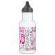 Dançar é sua paixão? Esta garrafa de água de aço inoxidável legal com uma palavra design de nuvem diz tudo. Algumas das palavras, intercaladas com notas musicais, são: respirar, ao vivo, amor, dança, ritmo e nascer para dançar. Esta versão apresenta tons quentes de rosa, cinza e branco para uso em todas as cores, exceto preto. Procure ID277 para ver opções de cores adicionais e produtos correspondentes a este design.