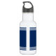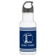 Seu nome personalizado, nome do barco ou texto com um farol náutico personalizado em um frasco de água com riscas brancas e azuis Marinhos.