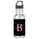 Girly, minimalista, moderna, elegante, garrafa de água personalizada com monograma inicial em preto e rosa. Com um monograma inicial e uma assinatura com script feminino em uma fonte de caligrafia manuscrita com caudas onduladas e moldura de círculo pontilhado em torno do seu monograma. Presente feminino perfeito para namorada, irmã, mãe, aniversário, casamento, chá de noiva, festa de 16 anos, proprietárias de salão de beleza, blogueiras de moda ou qualquer pessoa que ama estilo glamoroso e sofisticado.