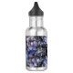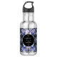 Uma garrafa de água de aço inoxidável ousada e sofisticada com ilustrações florais dramáticas em azul empoeirado e cinza contra um fundo preto forte. A tipografia branca nítida e o layout clássico estabelecem um tom elegante e temperamental. Perfeito para uma noite formal ou um casamento sofisticado.