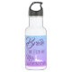 Uma garrafa de água especial a favor da noiva, esta peça apresenta um lindo fundo azul e lavanda ombre com modelos para personalização. "Noiva" é escrita no topo com letra roxa cursiva seguida de "O Futuro" com "Sra." escrita em caligrafia dramática. Ao lado de "Sra.", há um vestido branco. No fundo está um modelo para inserir seu novo sobrenome. Faça seu pedido hoje mesmo! Vestido de casamento: https://www.etsy.com/shop/WinchesterLambourne