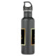 A garrafa de água com uma imagem de ouro é dimensionada sobre um fundo preto. Simples e elegante.