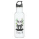 Garrafa de água personalizada com uma ilustração de um urso panda preto e branco sentado em algum bambu de aquarela verde. Uma pequena bolha de fala com um dentro do coração. Design bonito com um panda expressando seu amor.